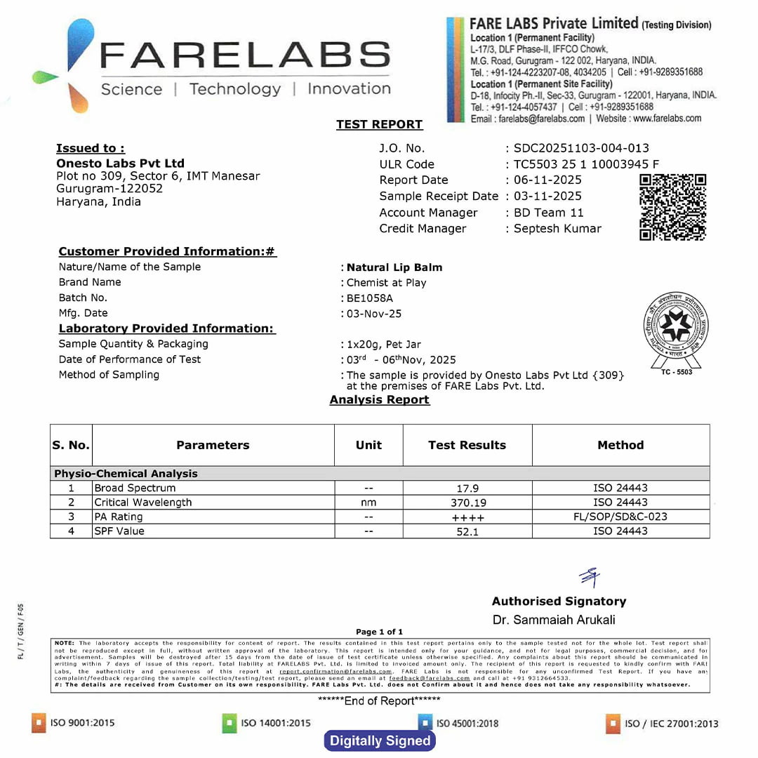Ricinus Communis (Castor) Seed Oil, Euphorbia Cerifera (Candelilla) Cera, Cocos Nucifera (Coconut) Oil, Butyrospermum Parkii (Shea) Butter, Methylene Bis-Benzotriazolyl Tetramethylbutylphenol, Bis-Ethylhexyloxyphenol Methoxyphenyl Triazine, Theobroma Cacao (Cocoa) Seed Butter, Prunus Amygdalus Dulcis (Sweet Almond) Oil, Daucus Carota Sativa (Carrot) Seed Oil, Rubus Idaeus (Raspberry) Seed Oil, Niacinamide, Copernicia Cerifera (Carnauba) Cera, Kojic Acid Dipalmitate, Dicaprylyl Carbonate, Ceramide EOP, Glycyrrhiza Glabra (Licorice) Root Extract, Cetearyl Olivate, Sorbitan Olivate, Zinc Oxide, Titanium Dioxide, Caprylyl Methicone, Tocopheryl Acetate, Olea Europaea (Olive) Fruit Oil, Olea Europaea (Olive) Leaf Extract, Olea Europaea (Olive) Fruit Extract, Ceramide NP, Ceramide AP, Sodium Hyaluronate, Copper Tripeptide-1, Palmitoyl Tripeptide-1, Pisum Sativum (Pea) Peptide, Flavour.