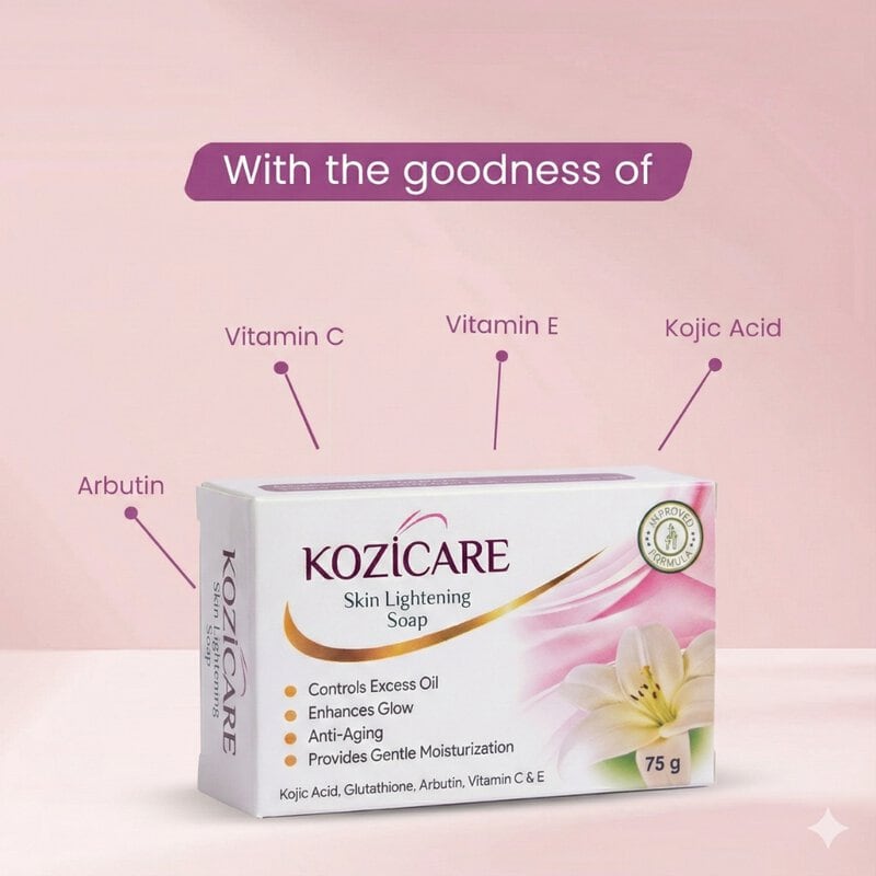 Sodium, Palmitate, Sodium Cocate, Perfume, Aqua, Olive Oil peg 7 ester (Olive Leaf Extract), Sodium L-Pyroglutamate, Sodium Chloride, Sodium Lactate, Tocopheryl Acetate (Vitamin E), Etidronic Acid, Pentaerythrityl Tetra-di-t-butyl Hydroxyhydrocinnamate, Kojic Dipalmitate 2% L glutathione, Arbutin, Niacinamide, Vitamin C, TiO2.