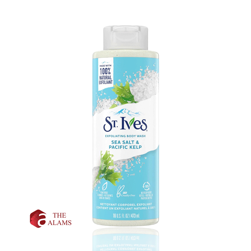 St. Ives Purifying Sea Salt & Pacific Kelp Exfoliating Body Wash exfoliates, cleanses, & smooths skins surface. Dermatologist tested, paraben free.